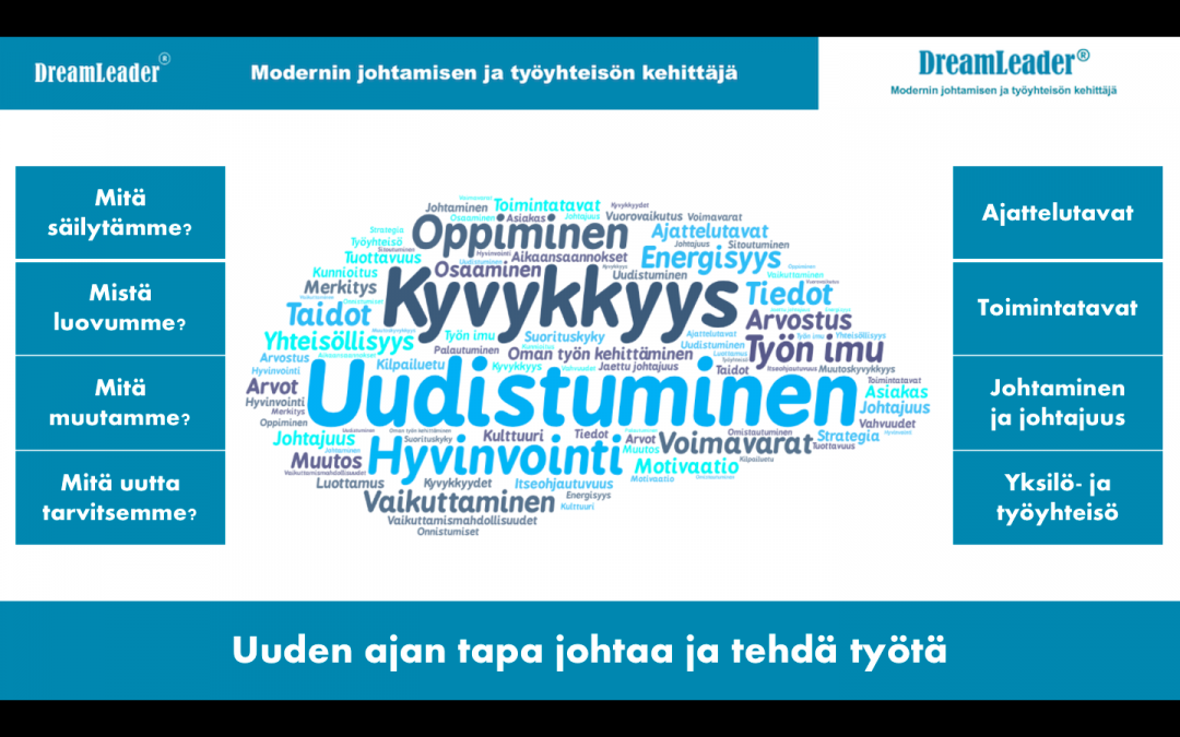 Todellinen muutos alkaa vasta, kun uskallamme tarkastella omaa johtamiskyvykkyyttämme kokonaisvaltaisesti. Oletko varma, että organisaatiosi nykyinen johtamiskyvykkyyden taso tukee ja mahdollistaa Teidän pitkän aikavälin menestymisen? Onko sinulla rohkeutta ottaa ensimmäinen askel kohti uutta?