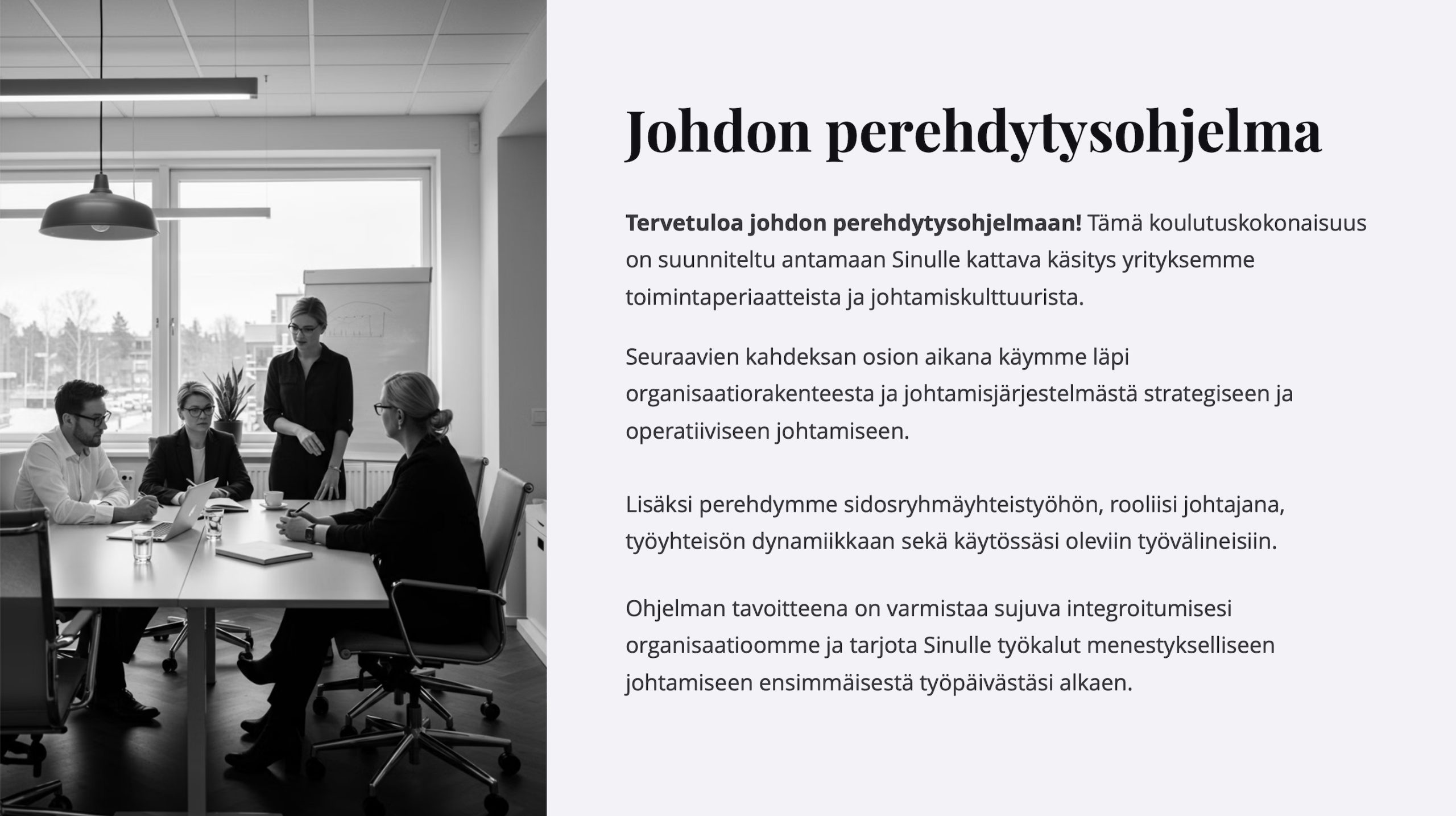 Tutustu yritysjohdon perehdytysohjelmaan.